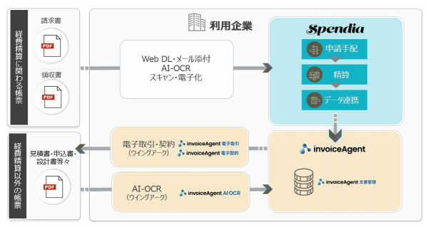 文書管理、AI-OCR、電子取引機能など複数の機能を兼ね備えている「invoiceAgent」は、あらゆる種類の帳票の読み取りや管理、企業間取引の効率化を1つのプラットフォームで実現できます。そこで、「Spendia」は、「invoiceAgent」と連携することで、経理業務における「ガバナンス強化」「業務効率化」「ペーパレス化」を加速させ、お客様のさらなるDX化に寄与できると考え、今回の連携を実現しました。