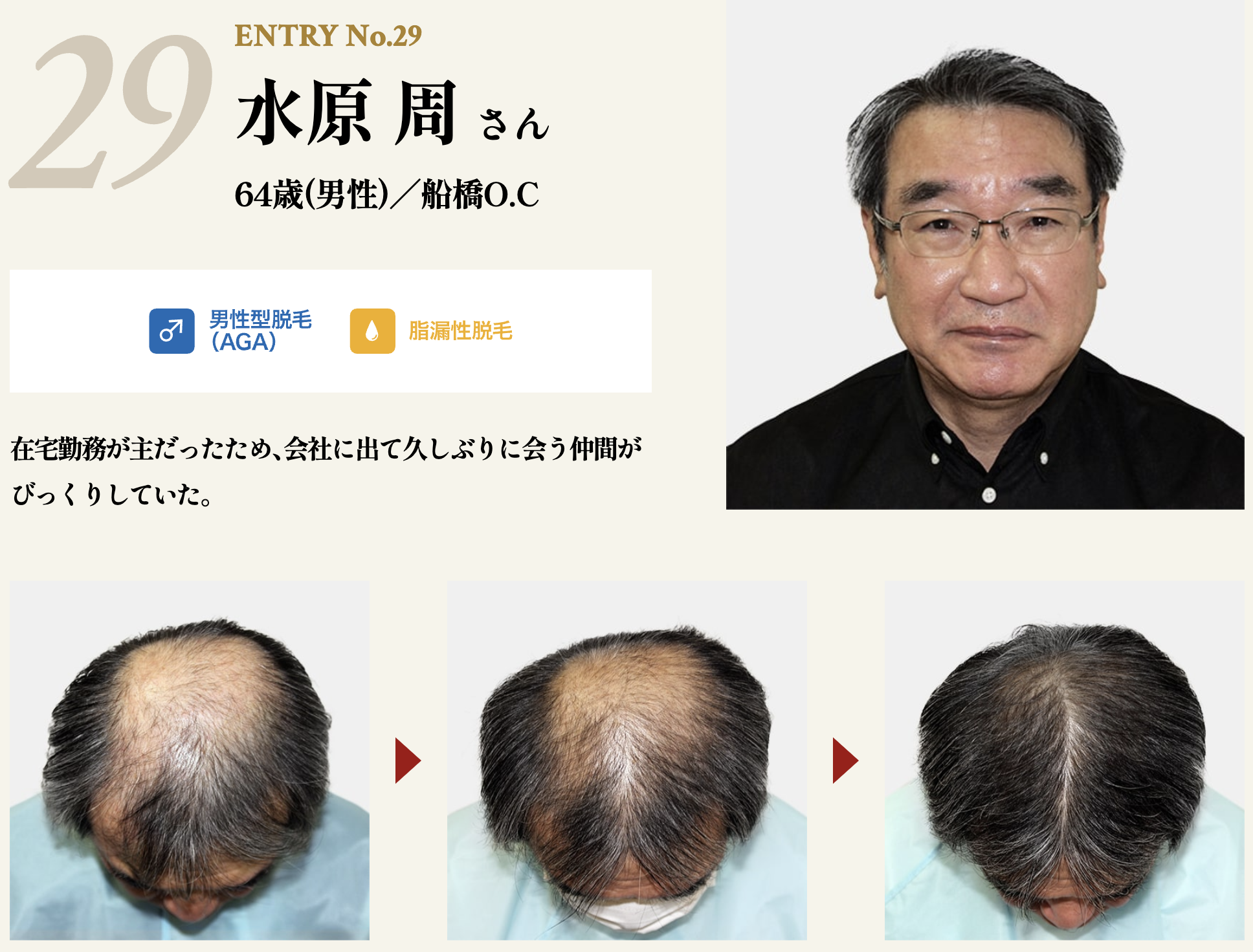 正真正銘自分の髪 リーブ21 (本社:大阪市中央区、代表取締役社長:岡村勝正、以下リーブ21)は、2023年7月から実施しておりました「第23回発毛日本一コンテスト」の入賞者12名を本日発表いたします。今回の優勝者は、水原周さん(64歳)に決まりました。