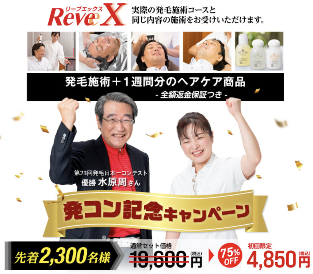 正真正銘自分の髪 リーブ 21 (本社:大阪市中央区、代表取締役社長:岡村勝正、以下リーブ21) は、第23回発毛日本一コンテストの優勝者(水原周さん)決定を記念して、9月27日(水)から「発コン記念キャンペーン」を実施いたします。
