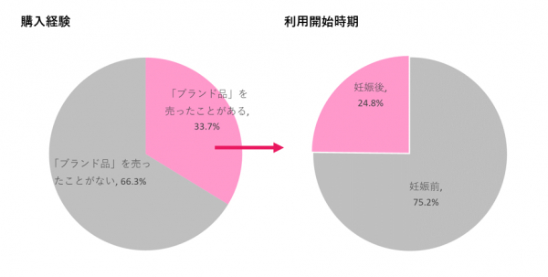 調査結果から、ブランド品買取サービスを利用した人のうち約25%が妊娠後に初めての利用を開始していることがわかった。また、サービスの利用理由で最も多かったのは、それまで使用していた物品を「利用しなくなった」ことであり、妊娠や出産による生活スタイルの変化が影響していることが想定される。これらのことから、ブランド品買取業者にとって、妊娠・出産は新規ユーザーを獲得する機会であると考えられる。
