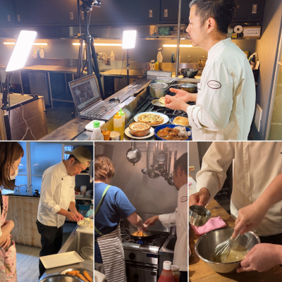 授業ではZOOMアプリを使用し、リアルタイムで画面越しに講師が経営・調理・ドリンク実習を行います。