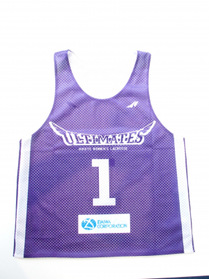 通気性がよく、非常に軽いメッシュ素材を採用しています。チーム名であるULTIMATESロゴの下には大きく番号が描かれており、その番号の下に当社ロゴをあしらいました。