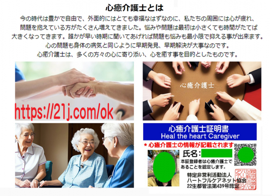 業務提携先:ハートフルケアネット協会 (心癒介護士資格)