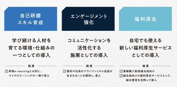今回、リアルなライブラリと組み合わせて導入したこともあり、社員からの反響も大きく、手ごたえを感じています。読後の感想についての投稿・共有など、あらたなコミュニケーションも発生しています。今後も「読書体験」の有用性を社内へ発信し、継続的な学習の拡大へと繋げていきます。