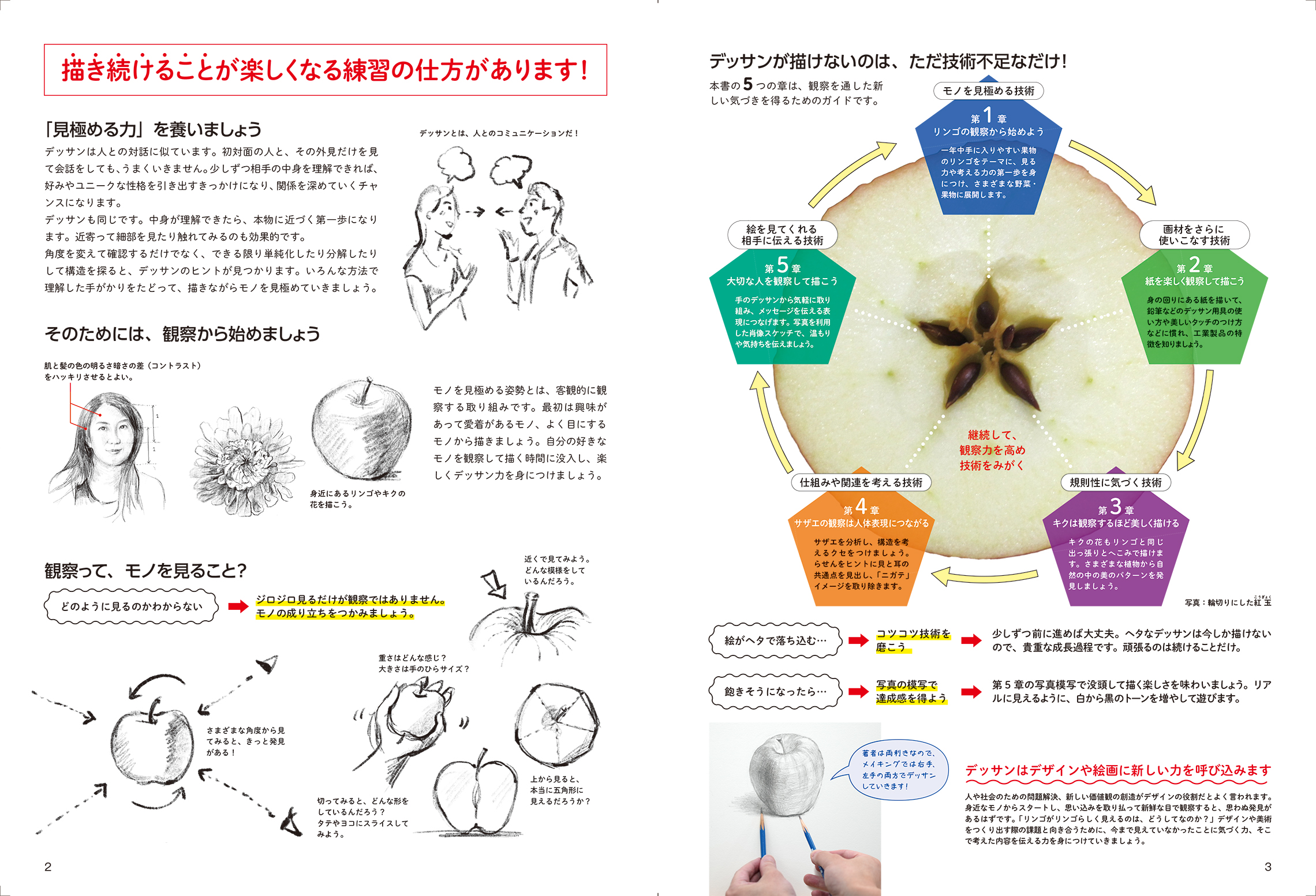 本書は、5つの章を通して観察による新しい気づきを得るためのガイドです。