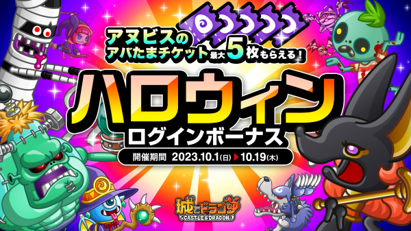 株式会社アソビズム(本社:東京都千代田区、代表取締役:大手智之)は、App Store・Google Playにて配信中の『城とドラゴン』で、「ハロウィンログインボーナス」を2023年10月1日(日)より開催します。