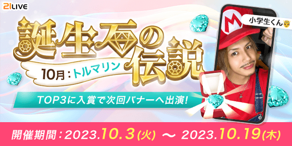 株式会社エムアンドティーティー(本社:沖縄県北谷町、代表取締役:井藤 三知子)が運営するエンターテイメント・ライブ配信アプリ【21LIVE(ニーイチライブ)】URL: https://21.live は、10月3日(火)から10月19日(木)にかけて誕生石アイテム・トルマリンの獲得数を競うランキングイベントを開催いたします。