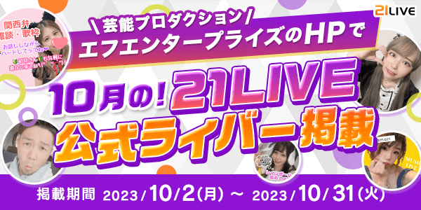 10月2日(月)より、21LIVEの10月度公式ライバーが芸能プロダクション・株式会社エフエンタープライズ(F.Enterpris)のホームページに掲載されています!(https://fenterprise.jp/)