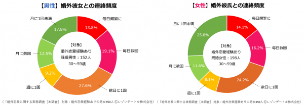 ・婚外パートナーとの連絡頻度は数日に1回が最多で約3割。毎日も2割強
