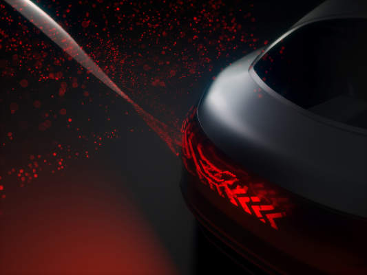 別の設計では、ALIYOS(TM) LEDフォイルテクノロジーを曲面のボディパネルに適用し、オフのときは目に見えないため、「Light out of nowhere(どこからともなく照らす光)」の効果を生み出しています。