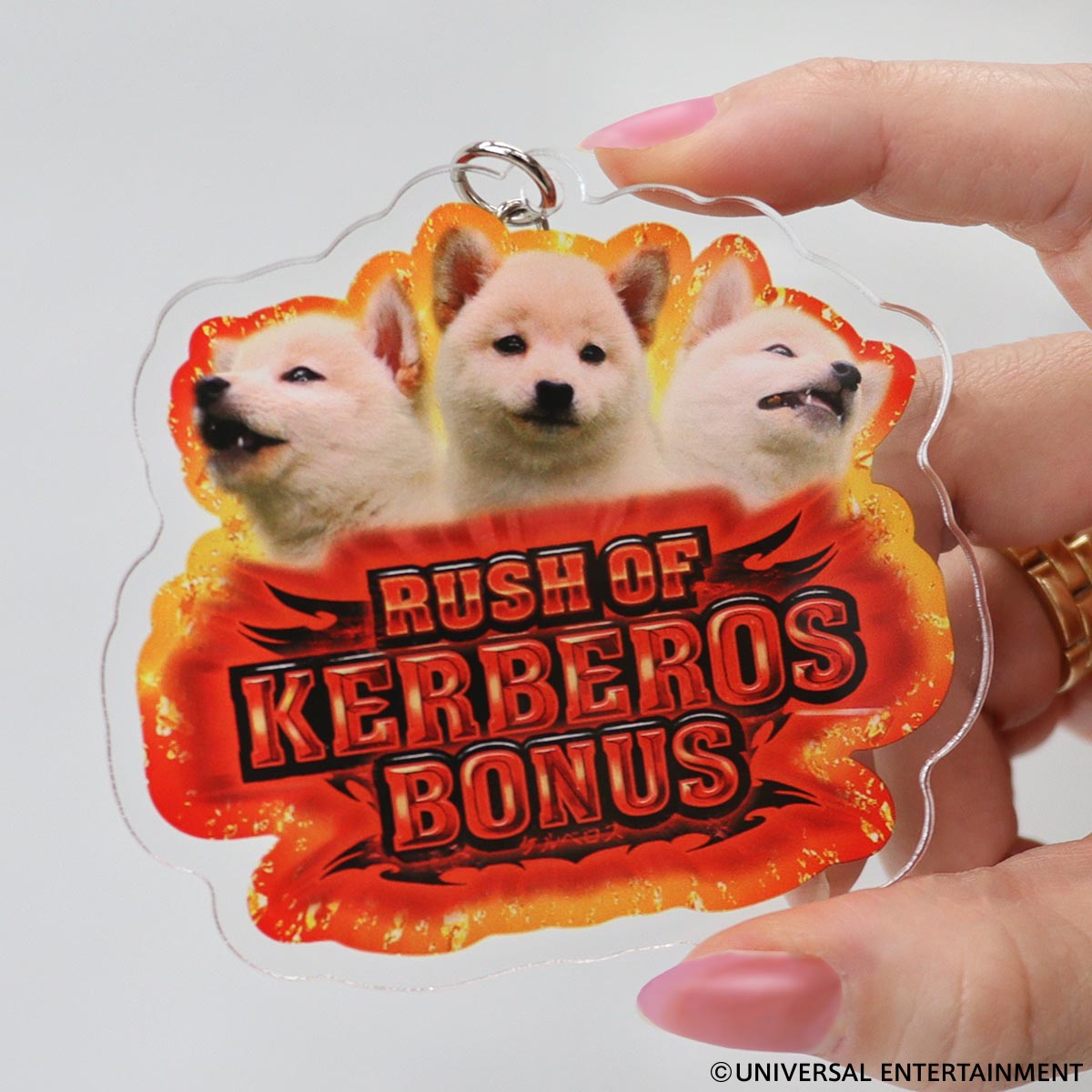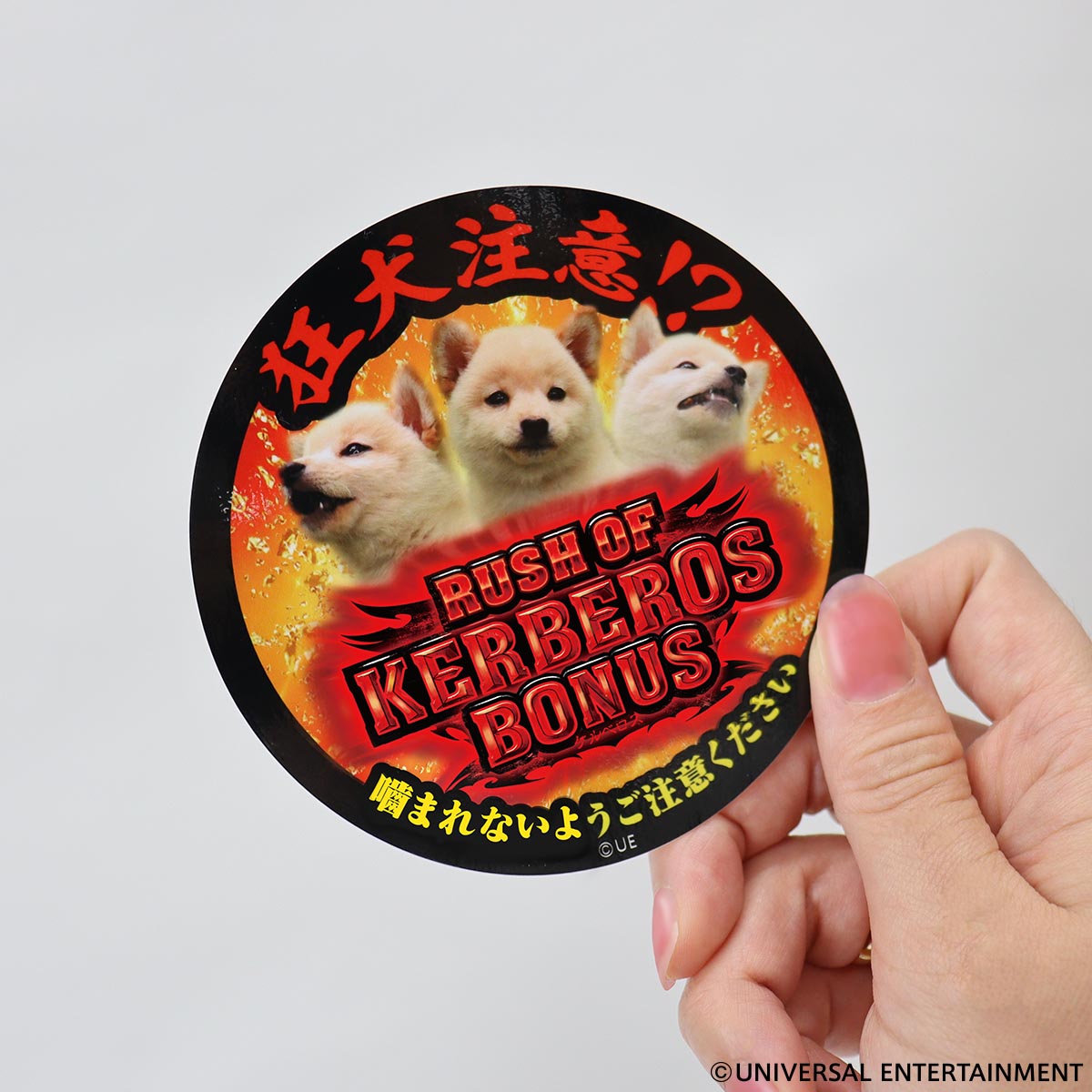 デザインは「Pアナザーゴッドハーデス-狂乱-」のプレミア演出に登場するケルベロスの柴犬バージョン、名付けて「柴べろす」!!