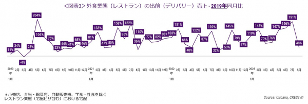 出前(デリバリー)は2019年同月比48%増