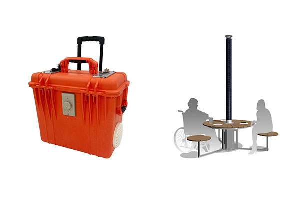 ソーラーシートを搭載し、ワイヤレス充電を使用できるピクニックテーブルです。