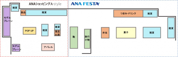 「ANA FESTA羽田到着ロビーギフトショップ」(以下、FESTA到着ロビーショップ)は、羽田空港第2ターミナル国内線到着ロビー1階の「出会いのひろば1」前にある総合土産店です。多様化するお客様のニーズにお応えできるよう、この度、A-styleの公式リアルショップとANA FESTAの複合店へと生まれ変わります。A-styleのサイトで気になった商品を、FESTA到着ロビーショップで実物を確認した上で購入したり、また、FESTA到着ロビーショップで見た商品を、店頭のQRコードからA-styleのサイトにアクセスし購入できたりと、垣根のない売場作りにより、お客様の体験価値向上を目指してまいります。