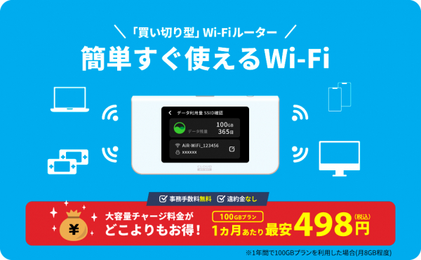 <100GBデータとWi-Fiルーターをセットでお届け>