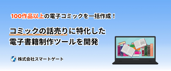 株式会社スマートゲート(本社:東京都豊島区、代表取締役:後藤康宏、以下スマートゲート)は、2023年10月11日、コミックの話売りに特化した電子書籍制作ツールを開発しました。
