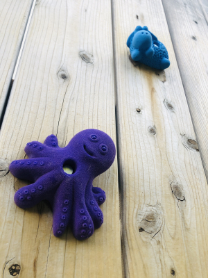 アスレチック「アッパレ!戦国大冒険!」初級コースのボルダリングゾーンのホルダーが変更。映画「クレヨンしんちゃん もののけニンジャ珍風伝」に登場した「タコ・カメ・ゴリラ」をイメージした可愛いホルダーが登場したり、踏むと音が鳴る仕掛けを追加、などさらに可愛く難しくなった初級コースを体験できる