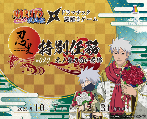「NARUTO-ナルト- 疾風伝」のキャラクターたちのオリジナルストーリーを体験しながら、謎解きゲームに挑戦する特別イベントの第19弾。幼少期のはたけカカシが父・サクモと共に任務に挑戦したオリジナルストーリーを追体験しながら、幼いカカシの目線で謎解きゲームを楽しむことができる。任務を達成された方には、オリジナルステッカーをプレゼント。
