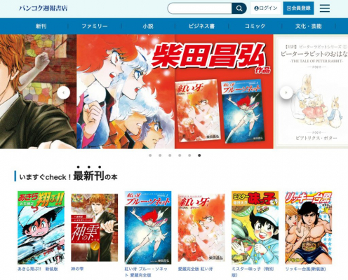 『バンコク週報書店』は、コミック、ビジネス書、文芸書など約200タイトルある電子書籍が月額500円(税込)で読み放題のサービスです。往年の人気コミックを中心にタイトルを豊富に取り揃えております。また、アプリではなくWEBブラウザ上でご利用いただくため、ダウンロード不要ですぐにお読みいただけます。