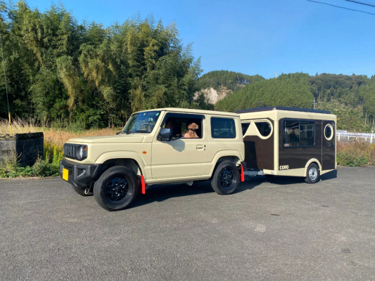 カラーリングも豊富で、昨今トレンドの「かわいい」「コンパクト」に当てはまっており閲覧数が伸びていることが予想できます。また、以下写真のように人気車種SUZUKIジムニーとも連結可能で、アウトドアユーザーも手が出しやすい打ち出しとなっています。動力となるエンジンを搭載していないため価格も魅力の一つです。