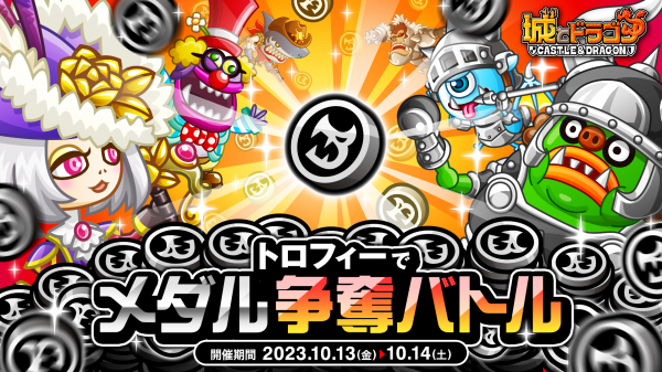 株式会社アソビズム(本社:東京都千代田区、代表取締役:大手智之)は、App Store・Google Playにて好評配信中の『城とドラゴン』で「トロフィーでメダル争奪バトル」を2023年10月13日(金)より開催いたします。