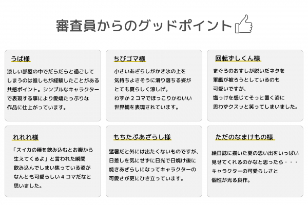 『痩せると口にしながらも結局痩せられず季節が過ぎてしまう』というシュールな構成の3コマに、共感する読者の方々からの反応が良好でした。また内容がテーマと非常にマッチしている点、SNSマンガとしての読みやすかった点も高い評価を獲得しました。