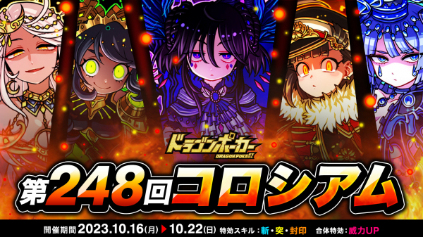 株式会社アソビズム(本社:東京都千代田区、代表取締役:大手智之)は、App Store・Google Playにて好評配信中のリアルタイム合体カードバトル『ドラゴンポーカー』で、2023年10月16日(月)より「第248回コロシアム本戦」を開催いたします。