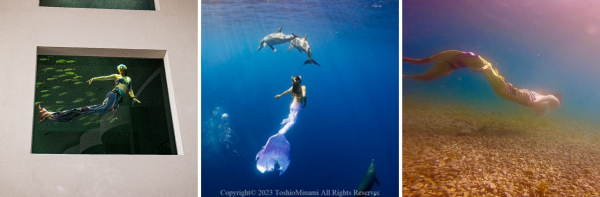公演に参加しているPADIマーメイド・インストラクターは、水中世界を自由に泳ぎ回るマーメイド・スイムに魅せられ、その魅力やマーメイド・スイムを楽しむための技術を伝えています。スクーバダイビングに比べて、より魚たちとの一体感が得られ、仲間と一緒に美しくパフォーマンスすることに達成感を感じているメンバーも多く、生き物たちへのインパクトも低いため、環境に配慮したアクティビティとしても今後注目を集めそうです。