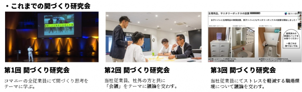 コマニーが2030年に目指す姿「間づくりでEmpower all Lifeを実現する」ために、弊社の従業員だけではなく、多くの方々との共創を加え、「間づくり」を通じて、一人一人が光り輝ける社会の実現に貢献するためにはどのような活動を行えば良いか、意見を交わす場やアイディアを出す場として開催しています。