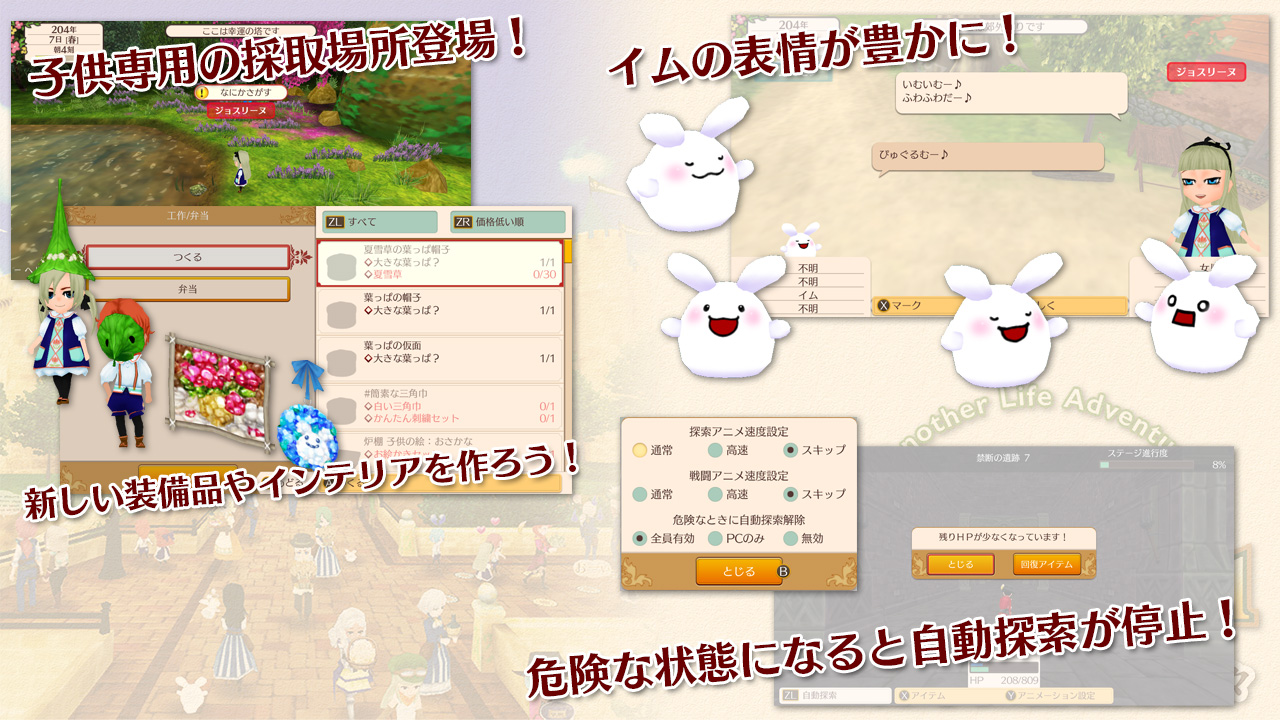 株式会社アルティ(本社:福岡県福岡市、代表取締役:宮崎慈彦)は、箱庭ライフシミュレーションゲーム『ワールドネバーランド エルネア王国の日々』Nintendo Switch版に子供専用の採取場所追加やイムの表情変化など新要素や、不具合の修正、調整を含む更新データを、10月25日に配信開始しました。