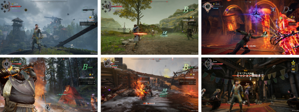 悪代官率いる軍勢をたった4人で迎え撃つ戦闘では、超人的な身体能力を活かしたダイナミックでスタイリッシュなアクションが楽しめます。深い森を舞台に、華麗な身のこなしで、敵の頭上を取って強襲することも可能です。