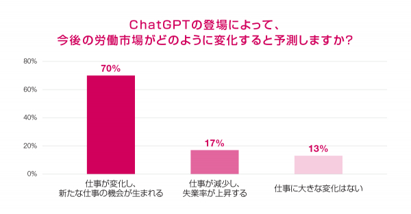 ● 約7割の会社員がChatGPTの登場により仕事が変化し、新たな仕事の機会が生まれることを示唆