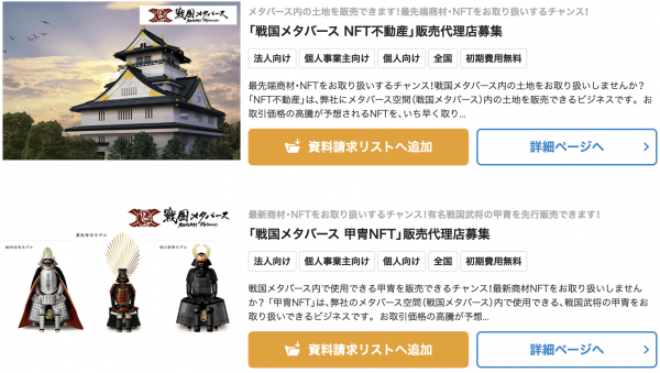 「戦国メタバース 甲冑NFT」販売代理店募集