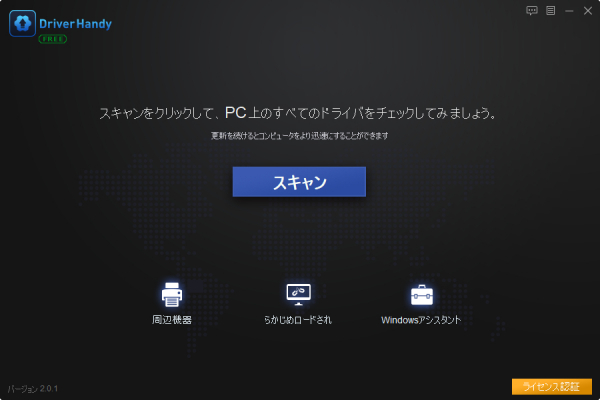 手順1.EaseUS DriverHandyを起動し、「スキャン」をクリックします。