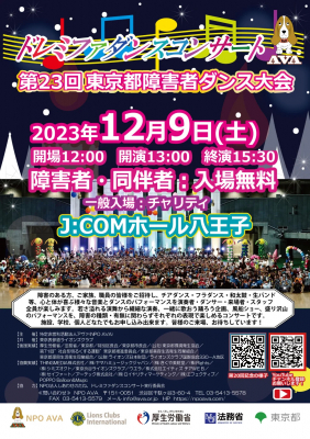 ライオンズクラブ国際協会330-A(東京)地区(ガバナー:阿部かな子)が、12月9日(土)J:COMホール八王子で開催される、第23回東京都障害者ダンス大会ドレミファダンスコンサート(主催:NPOアヴァ・共催:東京表参道ライオンズクラブ)を後援、障害者の方・障害者家族・障害者施設の方をご招待しています。