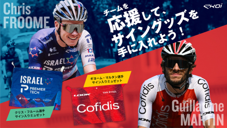 株式会社アキボウが国内総代理店を務めるEKOIは、2023年11月5日(日)に埼玉県のさいたま新都心駅周辺にて開催される「ツール・ド・フランスさいたまクリテリウム」で、サポート選手の活躍を応援するために、公式インスタグラムアカウントに応援コメントをいただいた方の中から抽選で、ギヨーム・マルタン選手(コフィディス)とクリス・フルーム選手(イスラエル・プレミアテック)のサイン入りチームミュゼットを各1名様にプレゼントします。