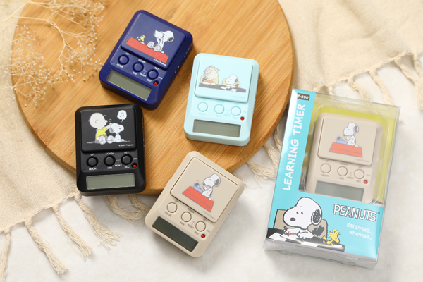 「LED点滅」「1秒アラーム」など、図書館や自習室でも使えて人気の「PEANUTSラーニングタイマー」から新色が登場!時計機能や移動中の誤作動防止ロックなど勉強に特化した多機能タイマーは受験・テスト前の対策に最適です。スヌーピーと仲間たちが一緒に勉強するシーンが描かれた新パッケージは「みんな応援しているよ!」という気持ちを伝えたい受験生へのプレゼントとしても