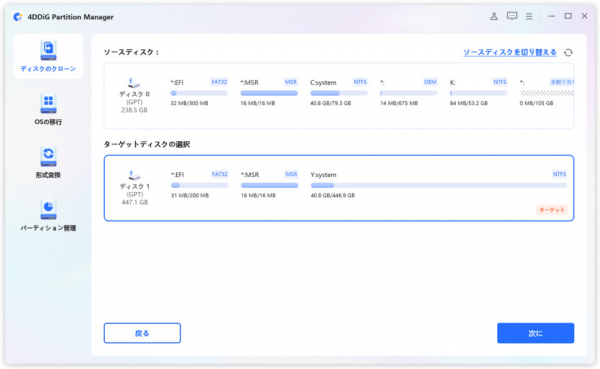 4DDiG Partition Managerは、ユーザーがストレージデバイスを管理・最適化できるように設計された強力なパーティション管理ツールです。4DDiG Partition ManagerのSSDクローン機能を使えば、手動でファイルをコピーして貼り付けることなく、1つのSSDの内容全体を別のSSDに簡単にコピーすることができます。さらに、このソフトウェアは貴重なデータを失うことはありません。