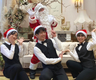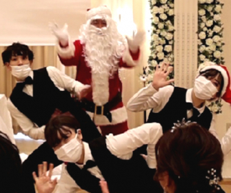 そんなフラッシュモブで結婚式場のスタッフに変装したダンサーが踊りだすだけでなく、サプライズでサンタが登場しダンスをします。