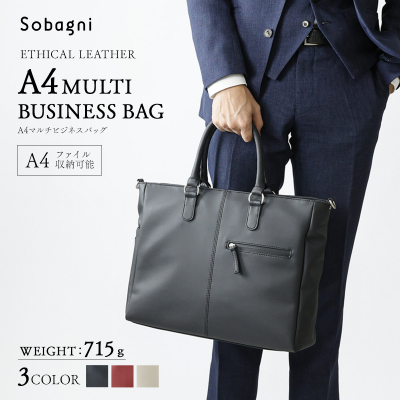 【新発売】ソバニ公式 国産エシカルレザー A4マルチビジネスバッグ