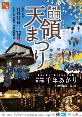 江戸時代、幕府直轄地・天領として、町人文化が花開いた豆田地区を中心に、当時の賑わいを再現する「日田天領まつり」を11月11日・12日で開催。(一社)日田市観光協会は、このまつりの主催者「日田まつり振興会」の構成員です。