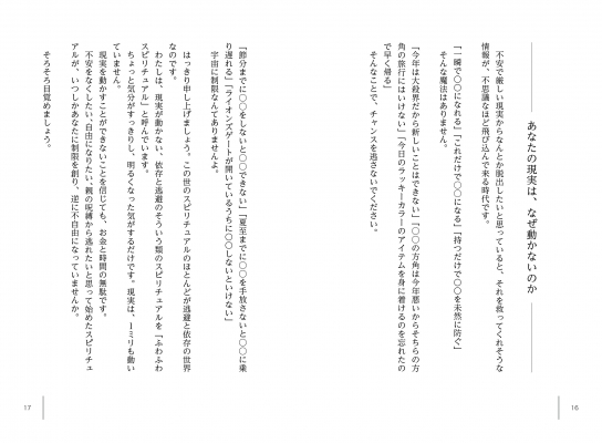 それぞれのワークには、ワークをやるためのポイント、実際に現実を変えてきた7人の体験談と、彼らの現実はなぜ動いたのか、著者からの解説も書かれています。