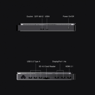 OCuLinkを使用したeGPU機能により、DisplayPort×2とHDMI×1の最大3画面同時出力に対応します。さらにUSB4ポートを接続することでUSB 3.2ポートやSDカードスロット、USB PD給電によるPC本体への充電を併用することが可能です。