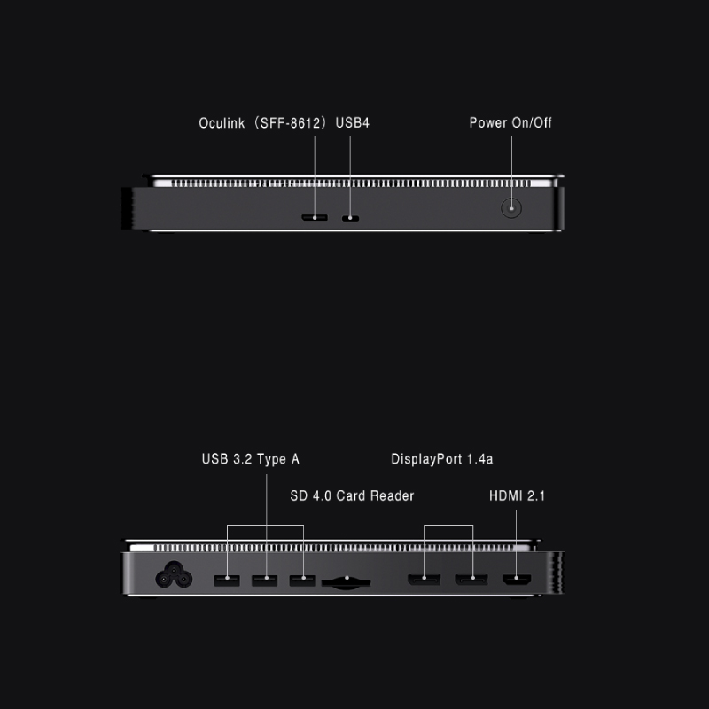 GPD G1は、AMD Radeon(TM) RX 7600M XTを搭載した最小クラスのeGPUボックスです。OCuLinkケーブル(別売オプション)を接続することでGPD WIN MiniやGPD WIN4 2023、GPD WIN Max 2 2023など、OCuLink搭載モデルのグラフィック性能を飛躍的に向上させます。OCuLink非搭載であってもThunderbolt 3/4またはUSB4ポートを搭載するその他の機器に接続が可能です。240 W窒化ガリウム電源を搭載することで小型・軽量化に成功、また軸流ファンと動的温度制御により高エアフローと低ノイズを両立しました。