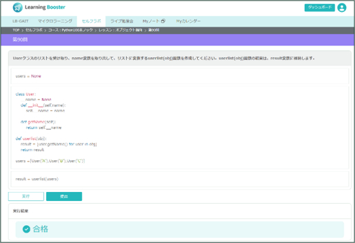 汎用的なプログラミング言語であるPythonを使用して、「繰り返し」「分岐」「関数」「オブジェクト指向」などの基本プログラムを100個完成させるセルフラボです。演習を通じて、プログラミングの基礎を身につけます。