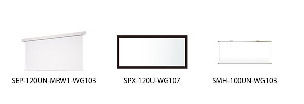■基本型式 : SEP(電動スクリーン)、SPX(張込スクリーン)、SMH(掛図スクリーン)