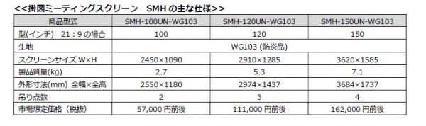 ■掛図スクリーン(SMH)の生地にもWG103を採用し、従来品よりも平面性を向上。