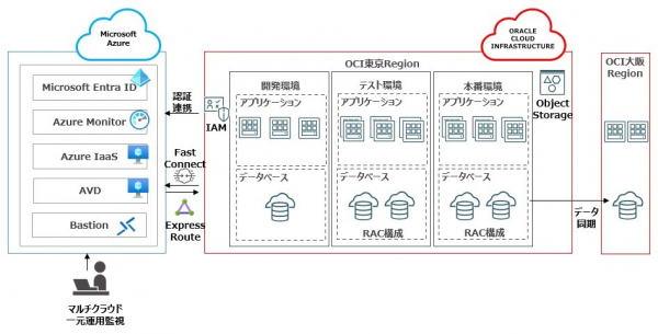 採用判断にあたり、事前にPoCを行い「OCIの性能評価」「適合度の評価」を実施し問題がないことを確認しました。また、すでに他システムで採用していたAzureと一つの統合クラウド環境と見立てることで運用負荷の低減を実現することを視野に入れ、その結果、機能・非機能を総合的に評価し、基幹システムの移行先としてOCIの採用を決定しました。