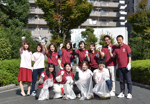 この環境美化活動「きれいな街がA-YO」には、当社の代表取締役、副社長、および社員の合計12名が参加しました。自社ブランドである『popomi(ポポミ)』のポロシャツと軍手を身につけ、川口駅のほど近くに位置する樹モール商店街の清掃を行いました。途中清掃に立ち寄った公園では、川口市内の保育園に通う子どもたちと出会い、交流することができました。子どもたちが元気よく遊ぶこの公園には、特に多くのゴミが捨てられており、社員からは「これは良くない状況だ」「子どもたちが安心して遊べるように活動を継続していきたい」などの声が上がりました。この環境美化活動を通じて、地域社会との絆が深めることができたとともに、働く街の自然環境への意識が高まりました。