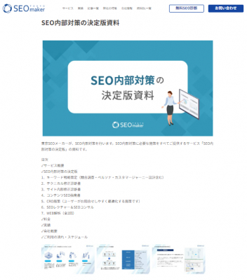 "SEO内部対策の決定版資料"サービスでは、SEO対策で一番大事なサイトの内部対策をすべて支援できる内容となっています。